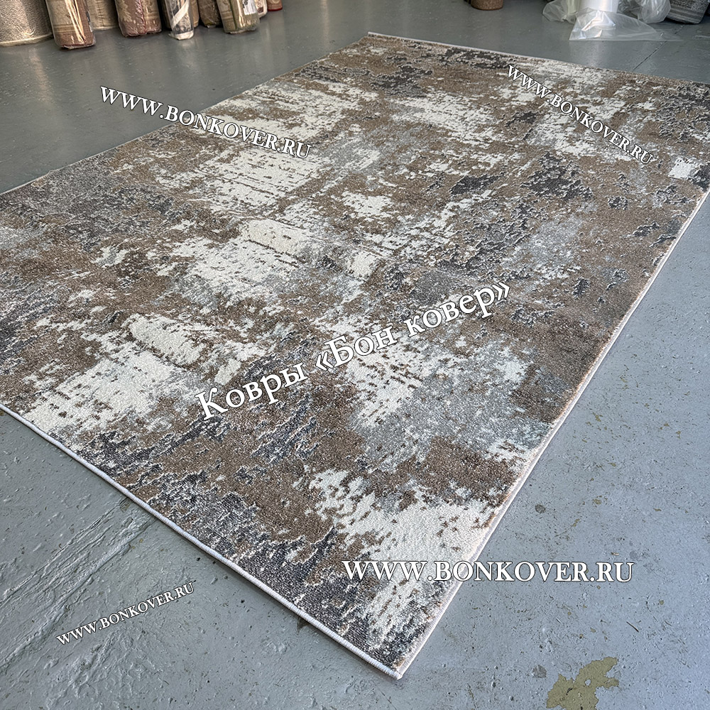 Абстрактный Ковер Серый с Коричневым Дизайн 03